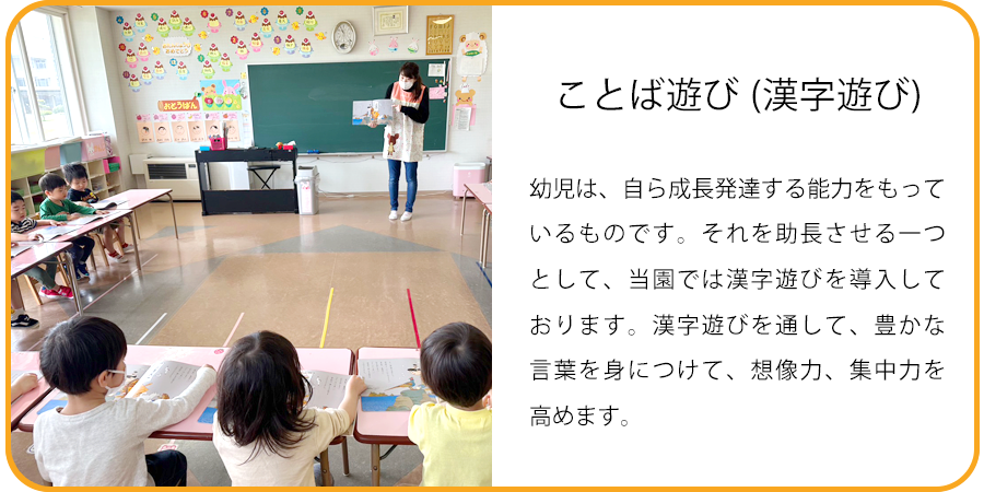 江別あかしや幼稚園は、体力づくり・音楽表現・言葉あそびを3つの柱に、専任講師によるサッカー・地域やお年寄りとのかかわり・図書貸出などたくさんの特色ある保育をしています。また、長時間保育や通園バスも充実しています。